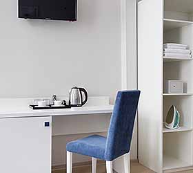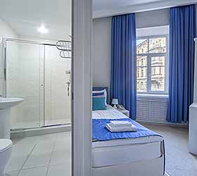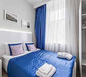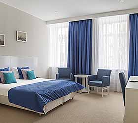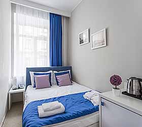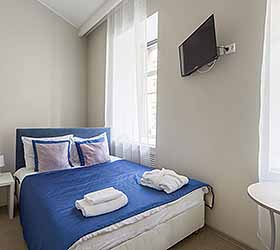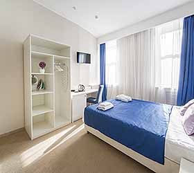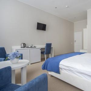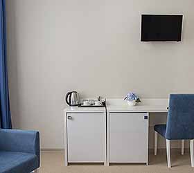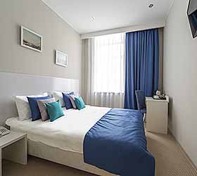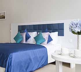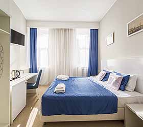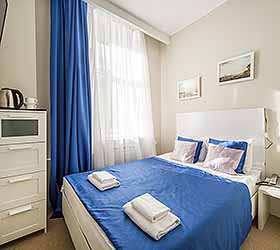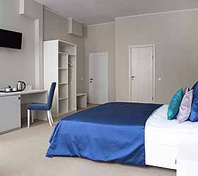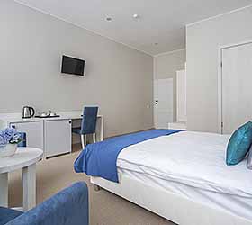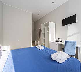 Отель предлагает 15 номеров различных категорий. Просторные номера выполнены в приятных стильных нежно-голубых и синих тонах. Каждый номер оснащён: Итальянской сантехникой и удобным сан узлом, кроватями с ортопедическими матрасами, которые сделают ваш сон комфортным, гладильный набор, мини бар, Wi-Fi на территории всего отеля, халаты и тапочки.