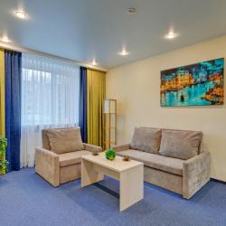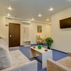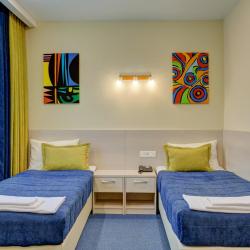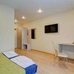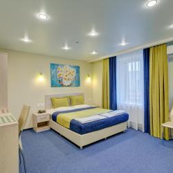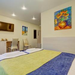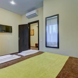 К услугам отдыхающих светлые номера, которые обустроены функциональной мебелью, удобными кроватями, современной техникой и беспроводным доступом к сети Wi-Fi. В каждом номере минимум один современный телевизор диагональю от 32 дюйма. В категориях имеются собственные ванные комнаты. Все номера в отеле сверкают чистотой, они просторные и уютные.