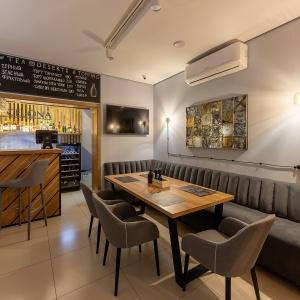 В отеле есть небольшой ресторан, где по утрам мы подаем сытные и вкусные завтраки, в остальное время ресторан работает по системе а-ля-карт.