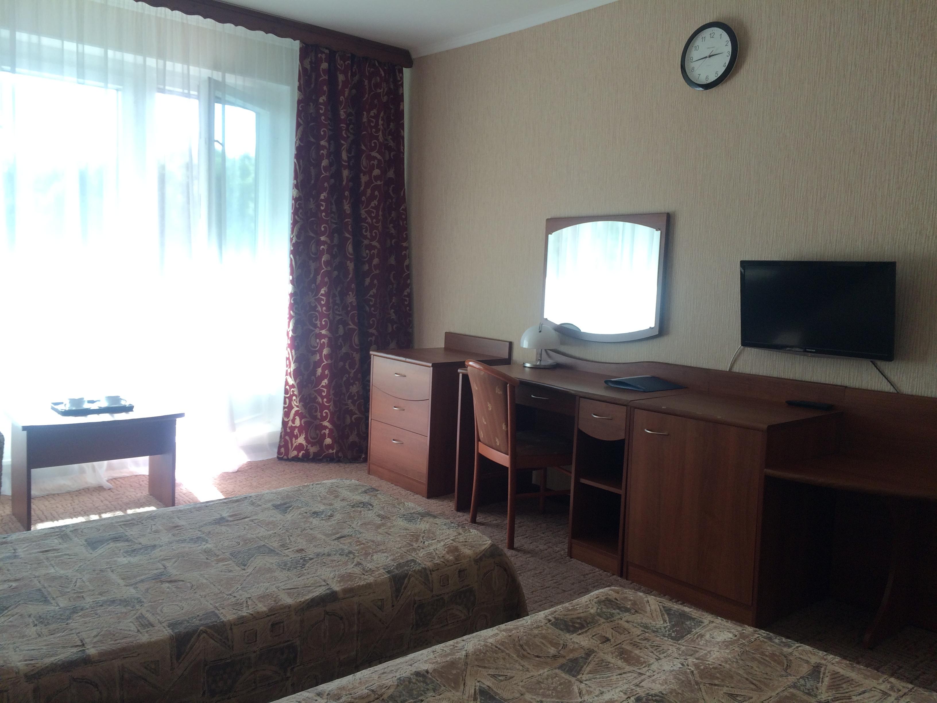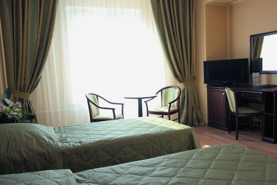 Вас ожидают просторные и уютные номера, в том числе и номера люкc, с живописным видом на лесопарковую зону. В каждом номере установлен телефон, холодильник, телевизор. К услугам гостей комната для переговоров, удобная для организации презентаций, проведения тренингов, семинаров и обучения групп. Все номера для некурящих.