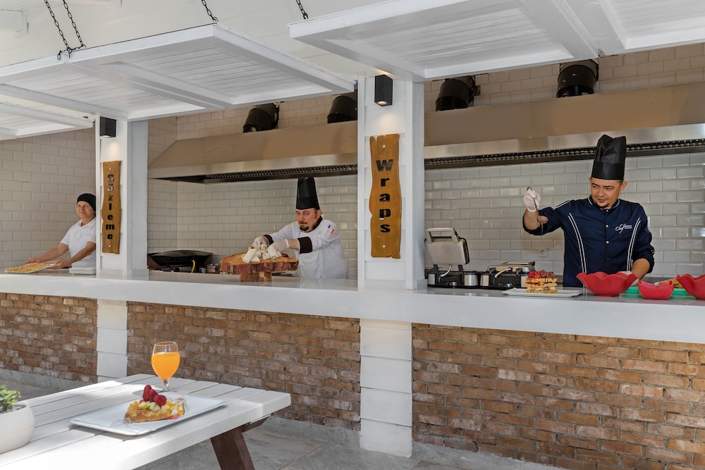 Это объект размещения типа «все включено». Еда и напитки в местных ресторанах и барах входят в стоимость номера. Дополнительная плата может взиматься за питание в некоторых ресторанах, специальные обеды и блюда, за определенные напитки и другие услуги.