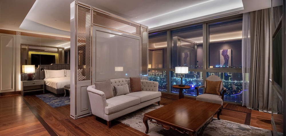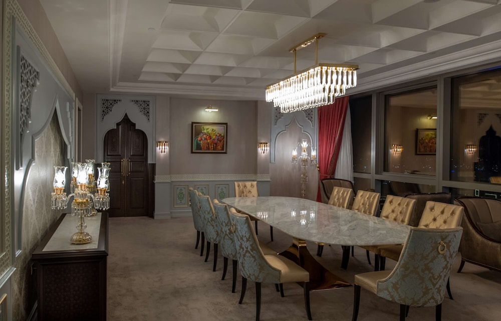 Отель Hilton Tashkent City расположен в Ташкенте. Гости могут посетить бар и отдохнуть на терраса. На территории работает крытый бассейн, ресторан, в том числе ресторан паназиатской кухни на крыше с видом на город. К услугам гостей круглосуточная стойка регистрации, доставка еды и напитков в номер, а также бесплатный Wi-Fi на всей территории.