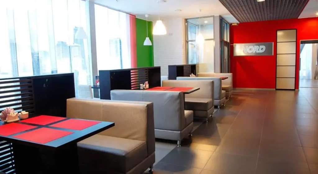 Отель Норд построен в 2014 году и представляет собой современную гостиницу европейского образца. Здание расположено в центре города Костомукша рядом с Дворцом культуры и главной торговой площадью, также в шаговой доступности - бюро переводов, юридических услуг и страхования, торговые центры, Дом молодежи и кинотеатр. К услугам гостей отель предлагает 24 номера различной категории: от стандартных до номеров люкс. Каждый номер оснащен отдельным душем и санузлом, телевизором с цифровым телевидением и холодильником. Кроме того, во всех номерах есть фен, чайник, чай и кофе, Wi-Fi. В гостинице работает кафе-ресторан, предлагающий различные блюда европейской и восточной кухни. На территории отеля находится банкетный зал, который можно заказать для проведения деловых или праздничных мероприятий. На втором этаже работает круглосуточный интернет-офис, где есть все необходимое для работы: компьютерное оборудование, высокоскоростной доступ в Интернет, а также лазерный принтер и сканер. Гости отеля могут воспользоваться парковка с круглосуточным видеонаблюдением, сауной.