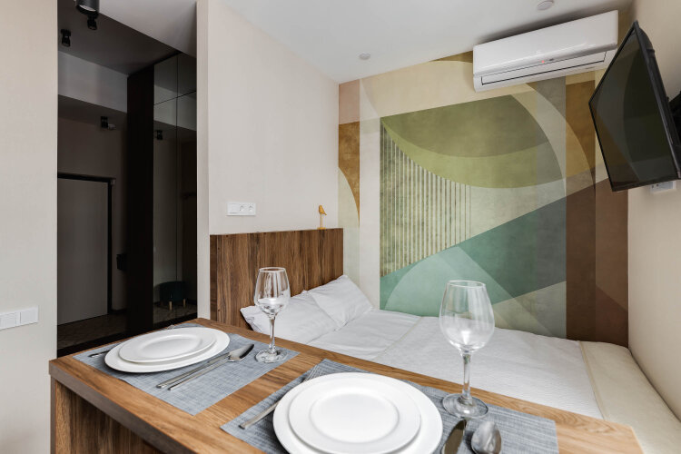 Номер уютно обставлен и оснащён необходимым, чтобы отдохнуть после долгого и насыщенного дня. Имеются телевизор. Оснащение зависит от выбранной категории номера.