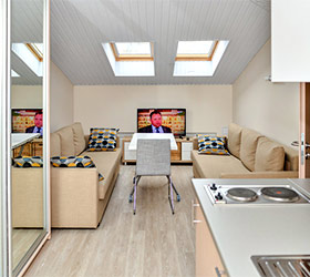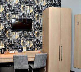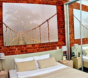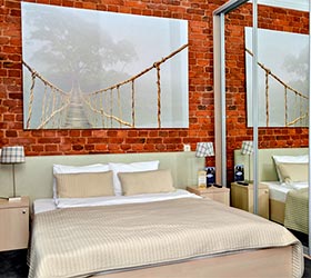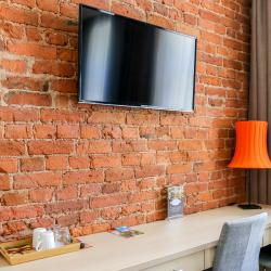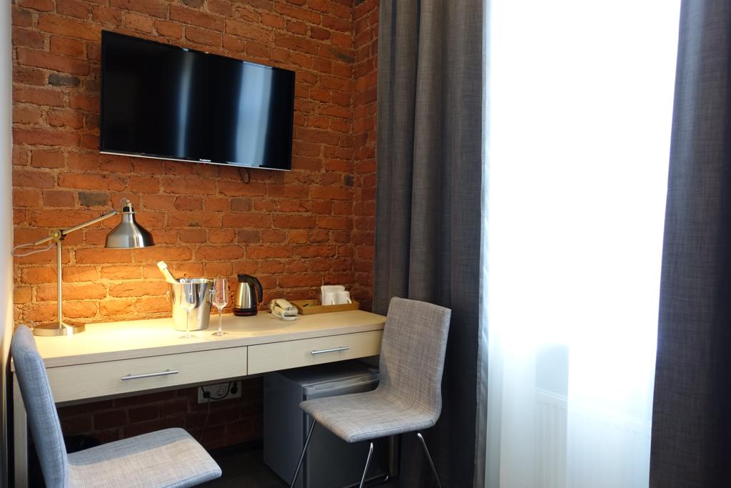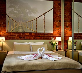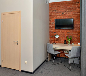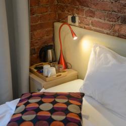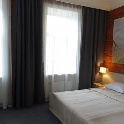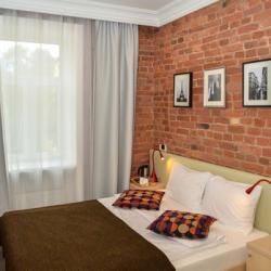 Интерьер отеля выдержан в модном, ярком стиле, но со свойственной петербургской сдержанностью в красках. Качественное постельное белье, удобные кровати, красивые портьеры обеспечат гостям полноценный отдых после активного дня.