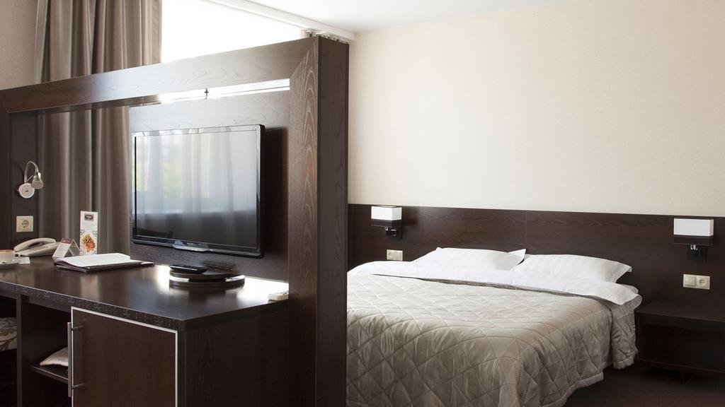 В гостиничный комплекс входят 104 номера, конференц-зал, 2 ресторана, кофейня и спортивный зал. В каждом номере оборудована рабочая зона: есть телефон, письменный стол, лампа для чтения, электронный сейф, кондиционер. Каждому гостю предоставляется персональный набор гигиенических принадлежностей: от расчески до лосьона для тела. Из отеля открывается вид на проспект Ленина, главную улицу города.