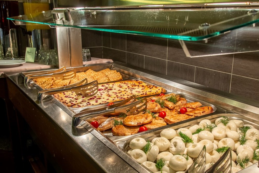 Когда вы проголодаетесь, отель приглашает вас посетить ресторан, где также есть бар. Для тех, кто предпочитает уединиться, отель предоставляет обслуживание номеров (по расписанию). Загляните в бар/лаунж и утолите жажду своим любимым напитком. Завтрак входит в стоимость номера.