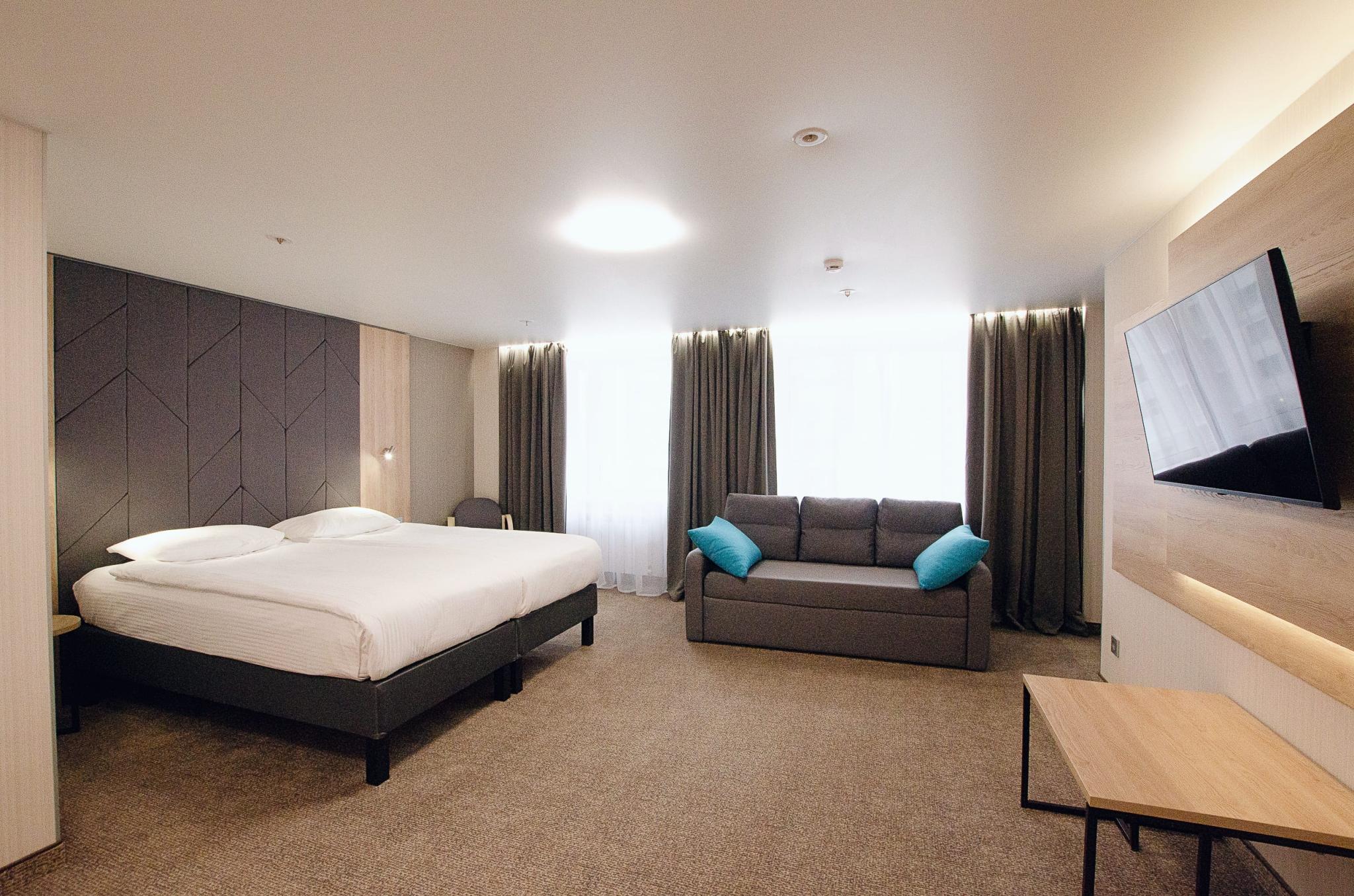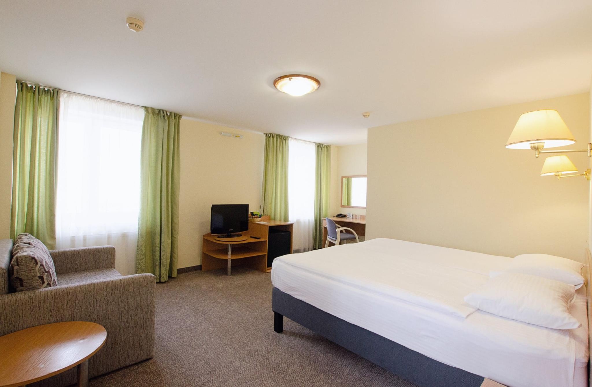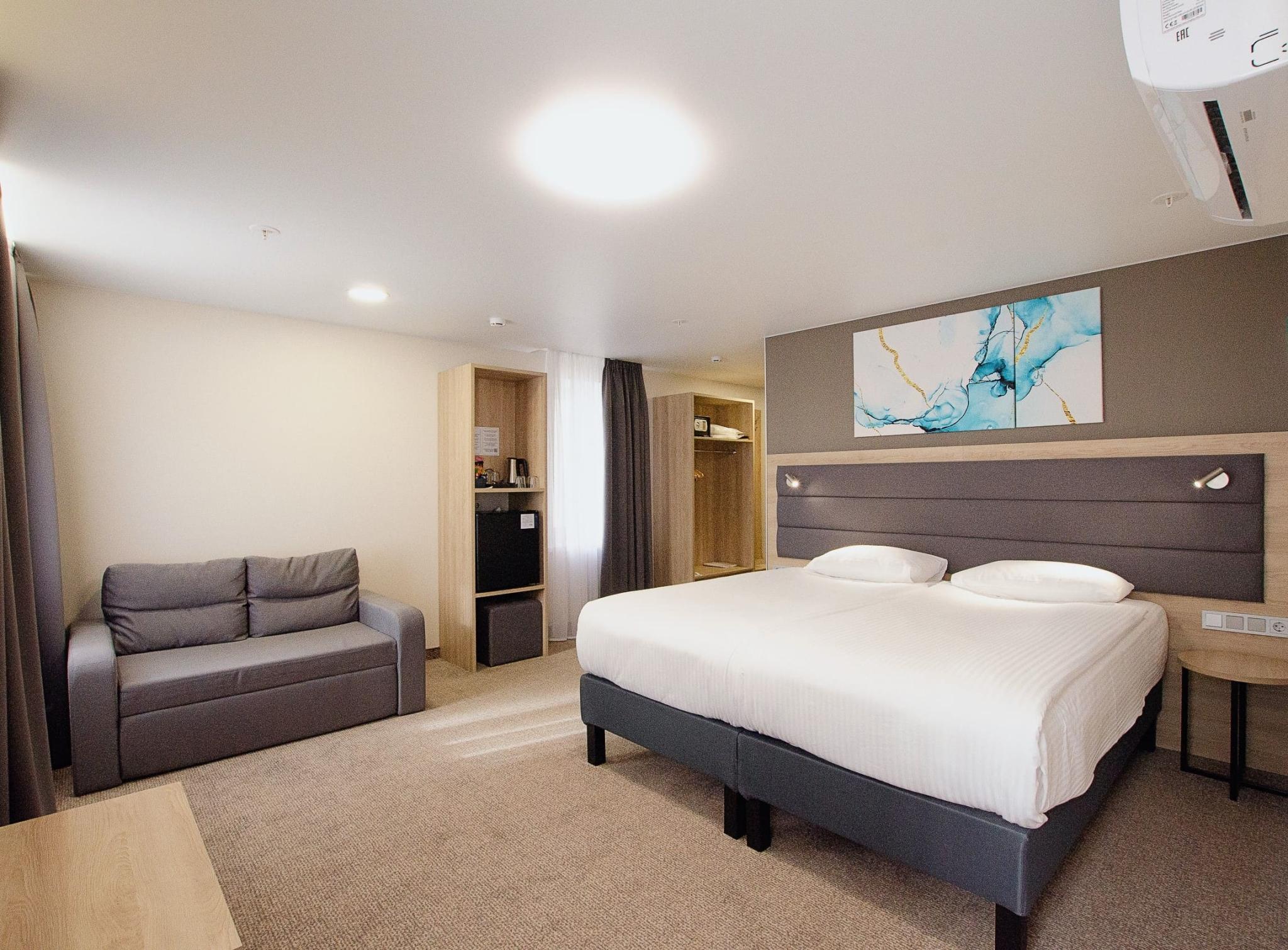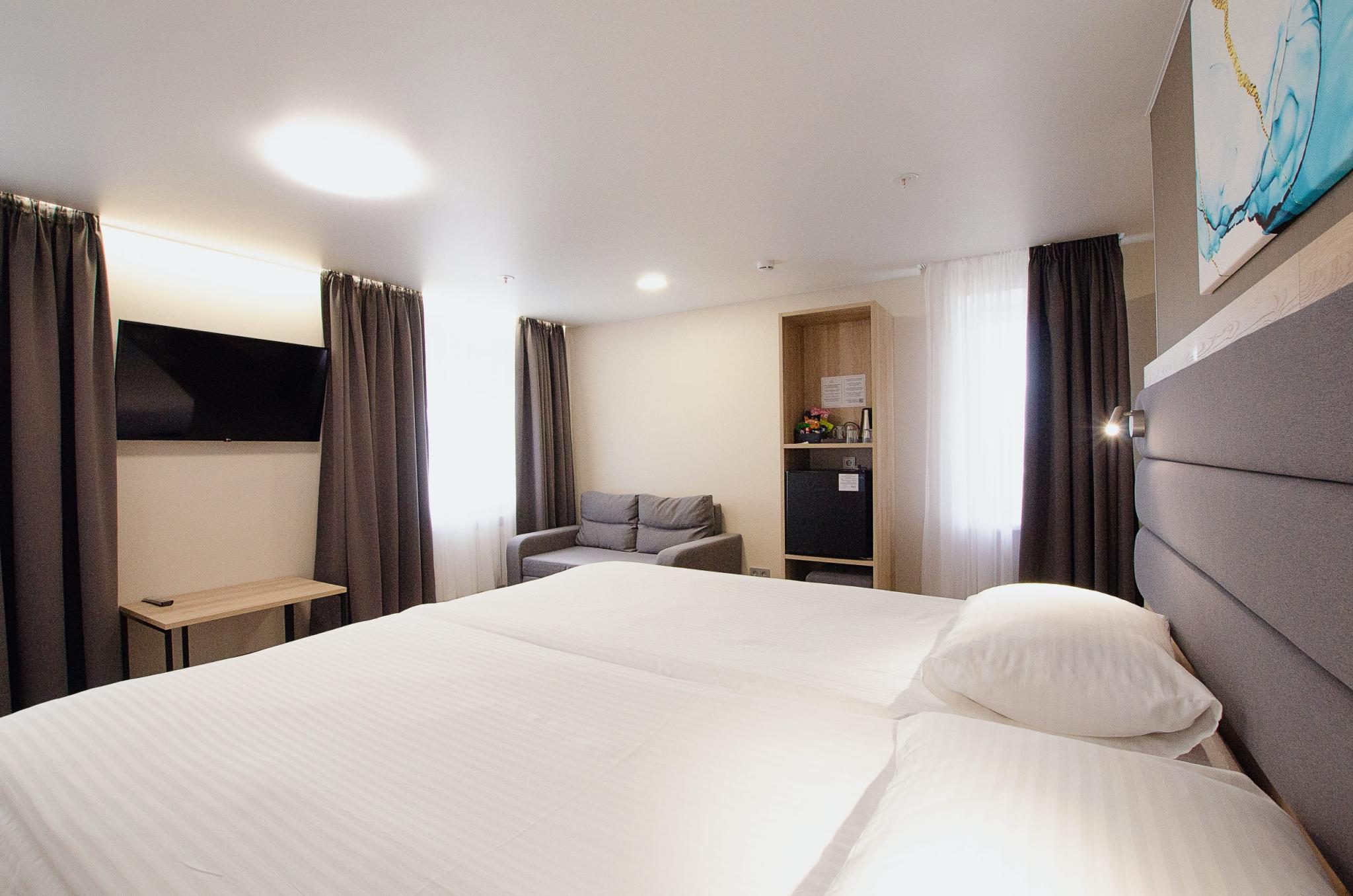 В каждом номере: удобные кровати, современная мебель, холодильник, телевизор, бесплатный Wi-Fi.