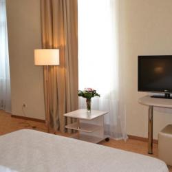 Общий номерной фонд гостиницы включает 93 номера, из них 3 номера класса люкс, 14 номеров повышенной комфортности, 2 номера для людей с ограниченными возможностями, 59 одноместных номеров и 15 двухместных номеров. Номера гостиницы оснащены: ЖК-телевизор, ванная комната: фен, туалетные принадлежности, одноразовые тапочки, махровые изделия, кабельное телевидение, высокоскоростной доступ в Интернет по технологии Wi - Fi, кондиционер, прямой телефонный номер, сейф, мини-бар, шумоизоляция.