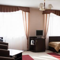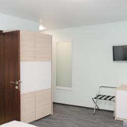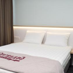 В ижевском отеле представлено 66 одноместных и двухместных номеров, включая апартаменты, номера-студии и номера класса люкс. Единовременно в гостинице могут остановиться около 80 гостей. В каждом из номеров отеля мы постарались учесть современные требования клиентов к оформлению пространства, комфорту и технологиям. Дети до 6 лет размещаются в отеле бесплатно.