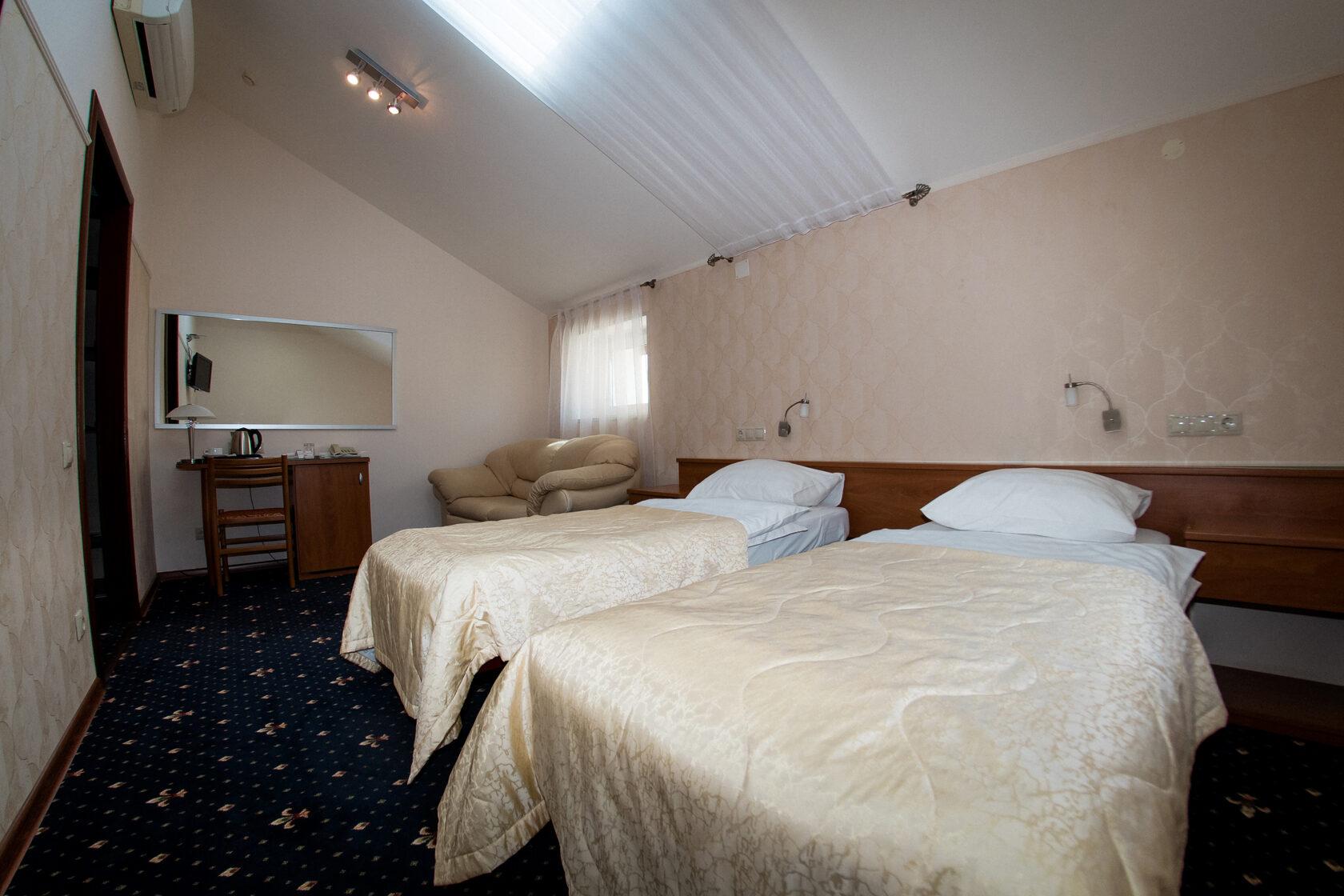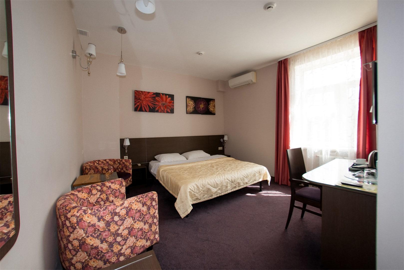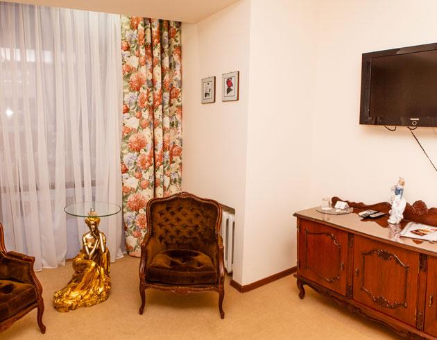 23 номера второго и третьего этажей рассчитаны на проживание до 38 человек. Каждый номер имеет свой оригинальный дизайн и оборудован системой кондиционирования, TV, Wi-Fi, мини-баром, феном, банными и парфюмерными принадлежностями.