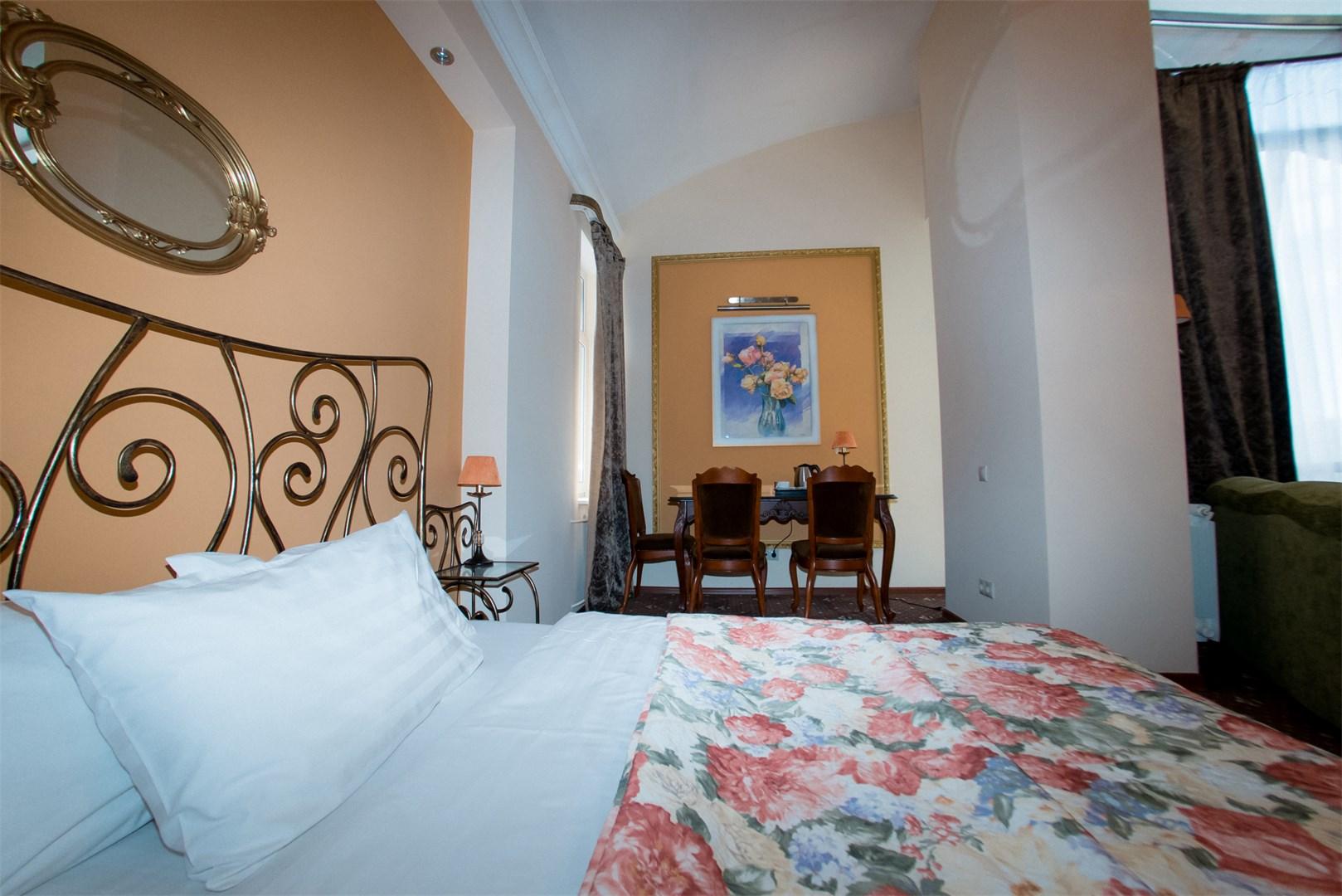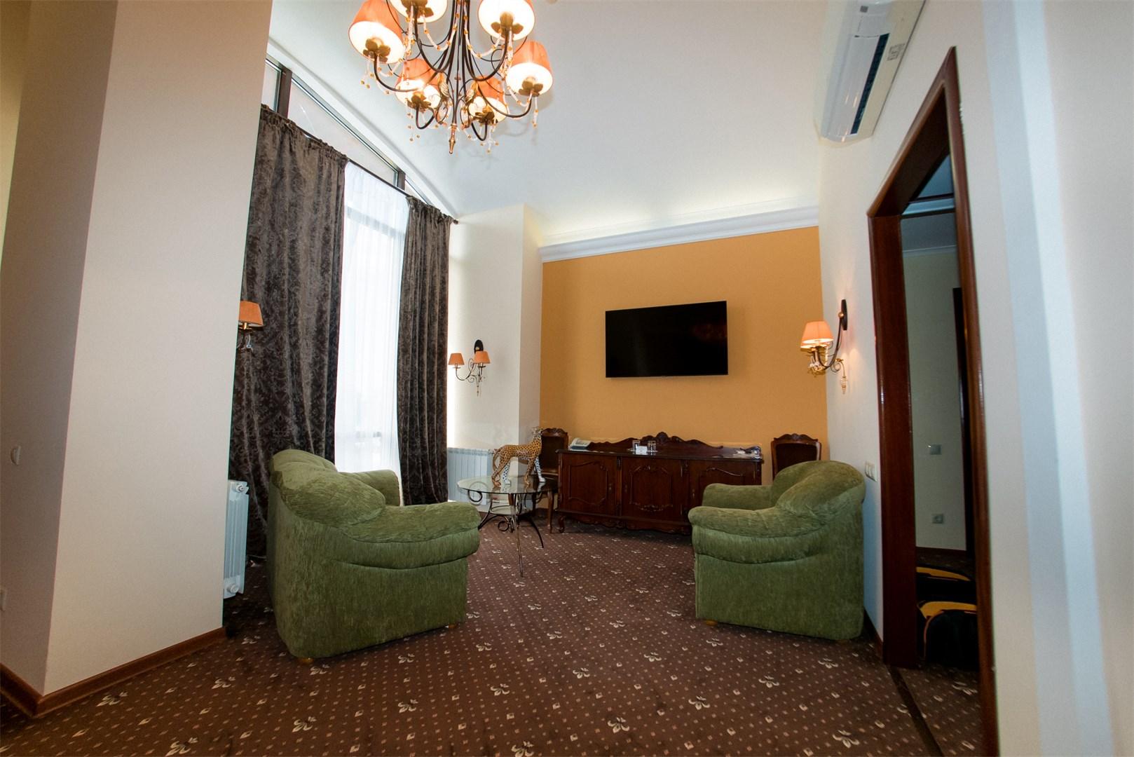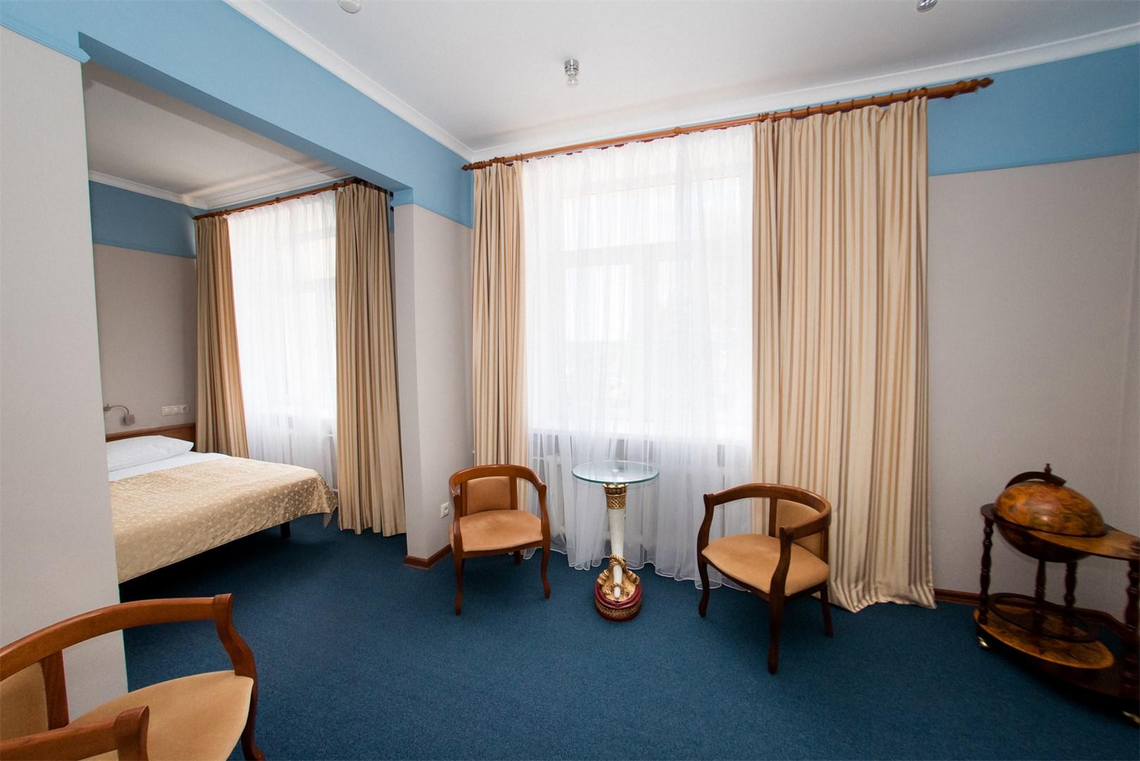 23 номера второго и третьего этажей рассчитаны на проживание до 38 человек. Каждый номер имеет свой оригинальный дизайн и оборудован системой кондиционирования, TV, Wi-Fi, мини-баром, феном, банными и парфюмерными принадлежностями.