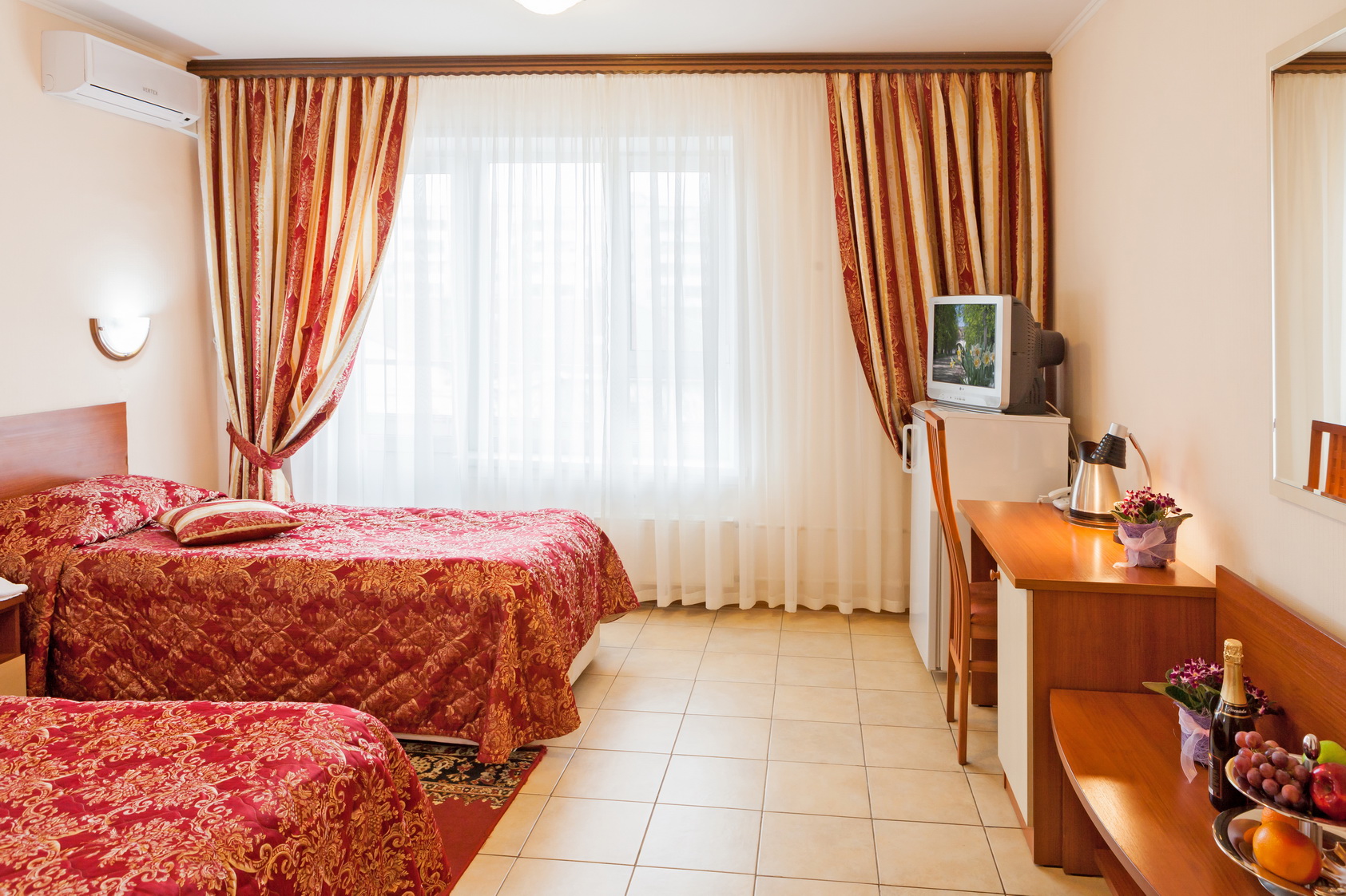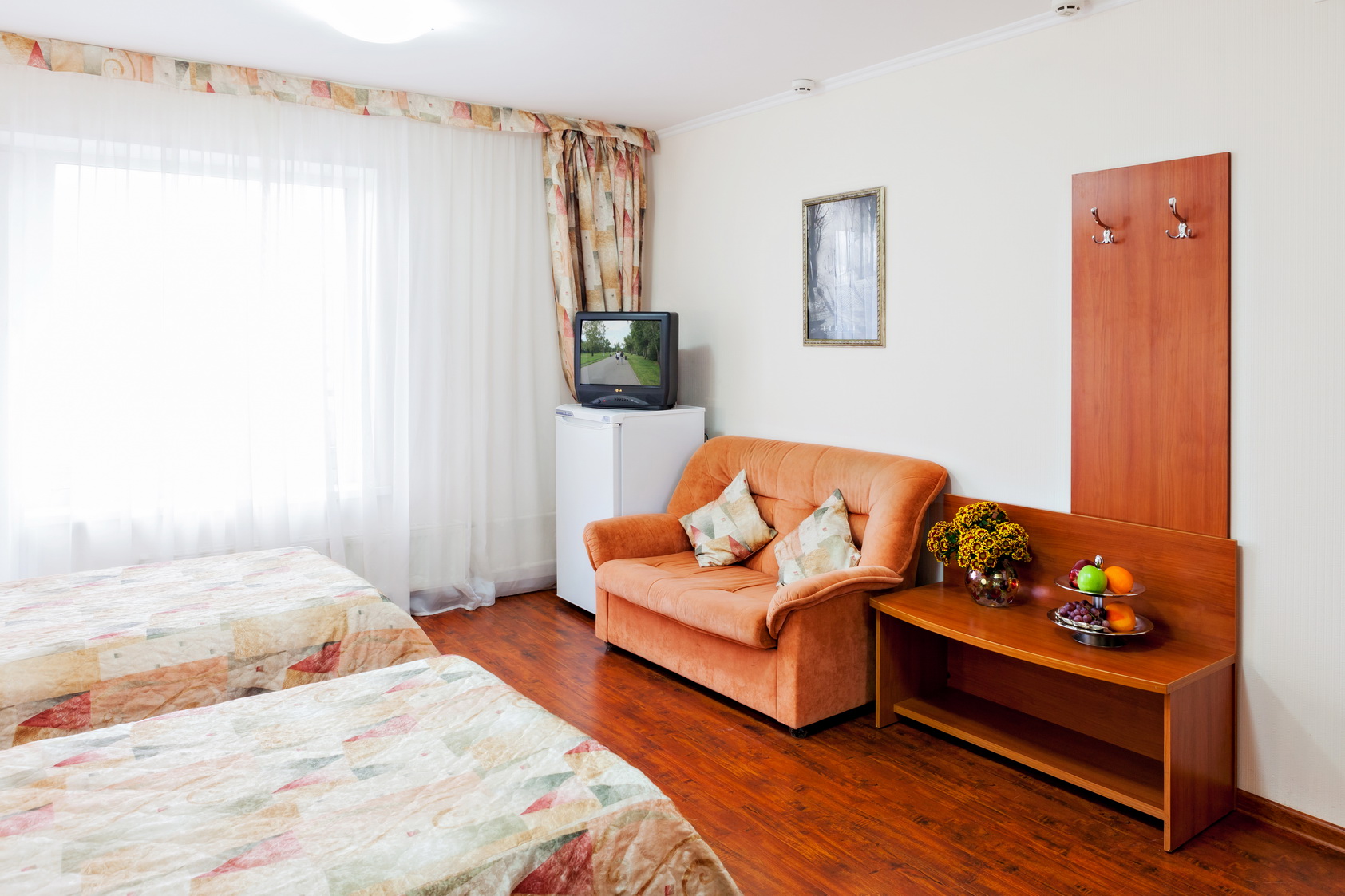 Все номера гостиницы «Электрон» оформлены в лаконичном стиле и оснащены телевизором, холодильником и кондиционером. Действует Wi-Fi на всей территории отеля. Гости номеров эконом-класса пользуются общей ванной комнатой.