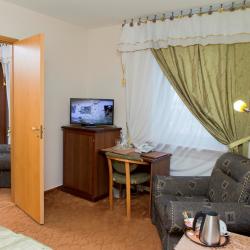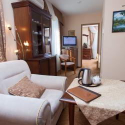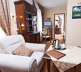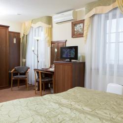 Гостиничный комплекс "Мономах" расположен в самом сердце города Владимира, в его историческом, культурном и деловом центре. В пяти минутах ходьбы от гостиницы находится главная городская достопримечательность - Золотые Ворота. Неподалеку расположены концертный зал, драматический театр, музей "Старый Владимир", Дмитриевский и Успенский Соборы, а также другие исторические и архитектурные памятники. К услугам отдыхающих 16 уютных номеров различной категории комфортности: одноместные и двухместные номера, номера "Полулюкс" и "Люкс", номера мансардного типа и свадебные номера. Все номера оснащены современной мебелью, индивидуальным сейфом, телефоном, мини-баром, цифровым телевидением и Wi-Fi доступом в Интернет. Гостиница оборудована автономной системой подачи тепла и горячей воды. Утром гостям предлагается завтрак в качестве комплимента от гостиницы. Для гостей открыт ресторан на 35 посадочных мест, летняя площадка на 50 посадочных мест и VIP-зал на 30 мест, оборудованный домашним кинотеатром. Блюда и напитки из ресторана можно заказать в номер. Для проведения деловых мероприятий предусмотрен конференц-зал на 20 мест с удобной мебелью, кондиционером, оргтехникой и доступом в Интернет. Для участников мероприятий организуются кофе-брейки, фуршеты и банкеты. Отель предлагает гостям множество дополнительных услуг, в числе которых - охраняемая автостоянка, сувенирный магазин, размещение с домашними животными, вызов такси, услуги прачечной, услуги бизнес-центра, междугородняя и международная связь, конные прогулки и многое другое.