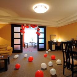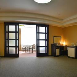 В комплектацию "Стандартных" номеров входят такие удобства, как телевизор, кондиционер, телефон, сейф, швейный набор, мини-бар, доступ в Интернет; в ванных комнатах - ванная, душ, туалетные принадлежности (мыло, шампунь, гель для душа, шапочка для душа). В номерах класса "Люкс Премиум" дополнительно - гостиная с мягкой мебелью, кофе-машина, кофейный столик, шкаф-купе.