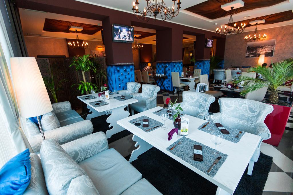 На территории гостиницы расположены два ресторана, по праву считающихся одними из лучших в городе. Организация питания — пансион, полупансион, проведение банкетов, организация фуршетов и кофе-брейков.