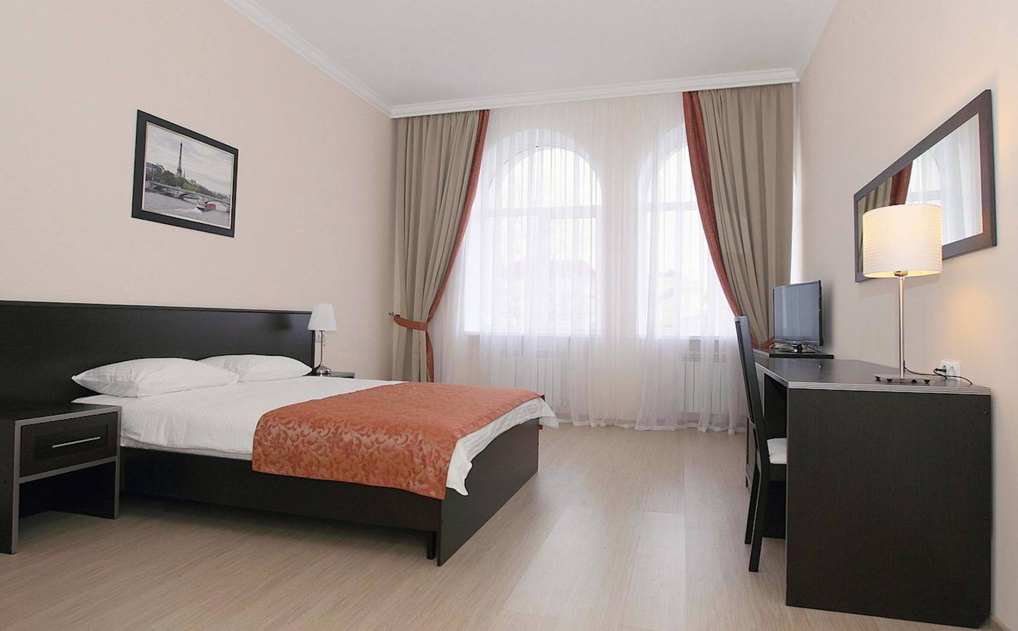 Для Вас в нашем отеле «Мезонин» предусмотрена возможность работы в конференц зале с прекрасным видом на панораму города.