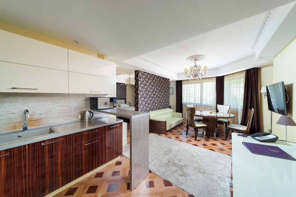 Когда вы проголодаетесь, зайдите в ресторан DENART cafe. В этом ресторане также есть бар/лаунж. Тем, кому не хочется покидать свой номер, предлагается круглосуточное обслуживание номеров. Завтрак (шведский стол) предлагается ежедневно с 8:00 до 11:00 за дополнительную плату.