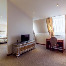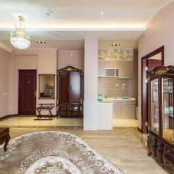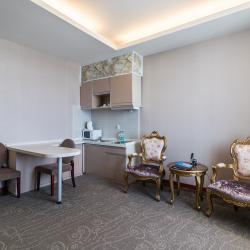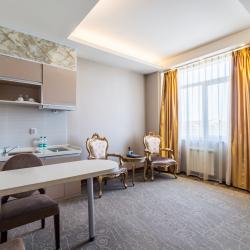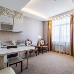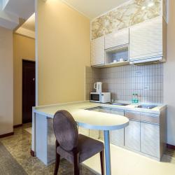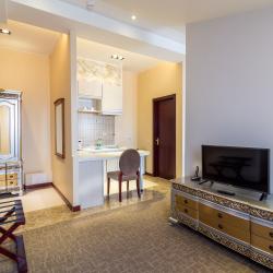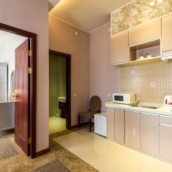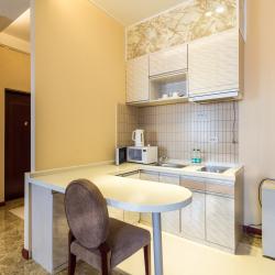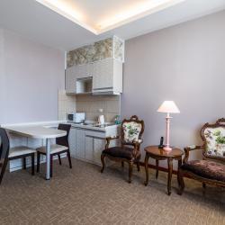 Отель имеет в своем распоряжении хорошо обставленные номера, которые оснащены: удобной кроватью, комфортабельной мебелью, собственной кухней, холодильником, телевидением.