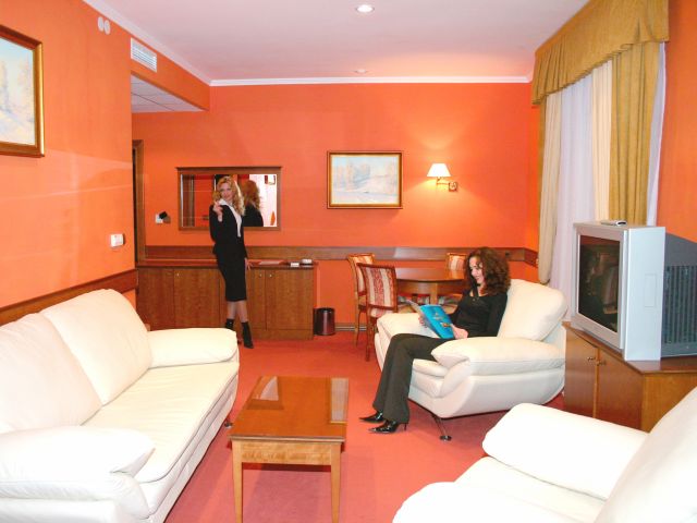 Для гостей отеля работает ресторан "Медвежий угол", расположенный на первом этаже гостиничного комплекса. Это уютный зал с прекрасным световым и музыкальным оформлением на 40 посадочных мест. Ресторан гостиницы предлагает следующие услуги: проведение корпоративных вечеров, банкетов с выездом на территорию организации или на дом, организацию выездных мероприятий на природе, пикников в лесу и на даче. Кроме ресторана, в гостинице имеются бары, расположенные в бильярдном клубе. На цокольном этаже гостиницы размещены турецкие бани.