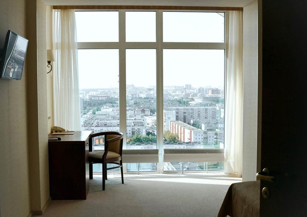 Главная особенность отеля - его расположение на верхних этажах самого высокого здания в округе, что делает отель уникальной достопримечательностью города. Со всех номеров открывается захватывающий вид на город, реку Обь и просторы тайги.