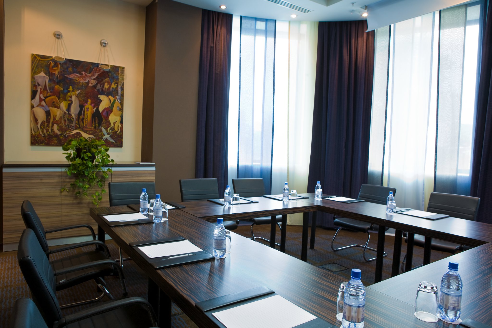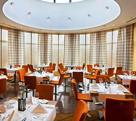 Стильный отель в центре Алматы: ресторан с видом на горы и город, бар и фитнес зал.