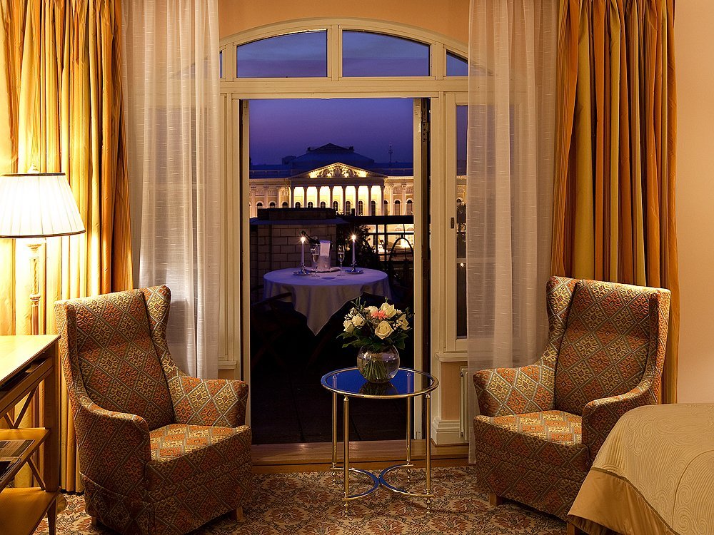 Из окон открывается панорамный вид на ансамбль площади Искусств. История отеля неразрывно связана с творческим миром театра, музыки и балета.