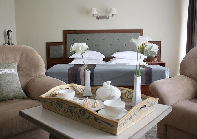 Отель предлагает размещение в номерах категорий "Эконом", "Стандарт", "Полулюкс" и "Люкс". Каждый номер оборудован индивидуальной системой кондиционирования, интерактивным телевидением, мини-баром, феном, холодильником, телефоном и Wi-Fi доступом в Интернет.