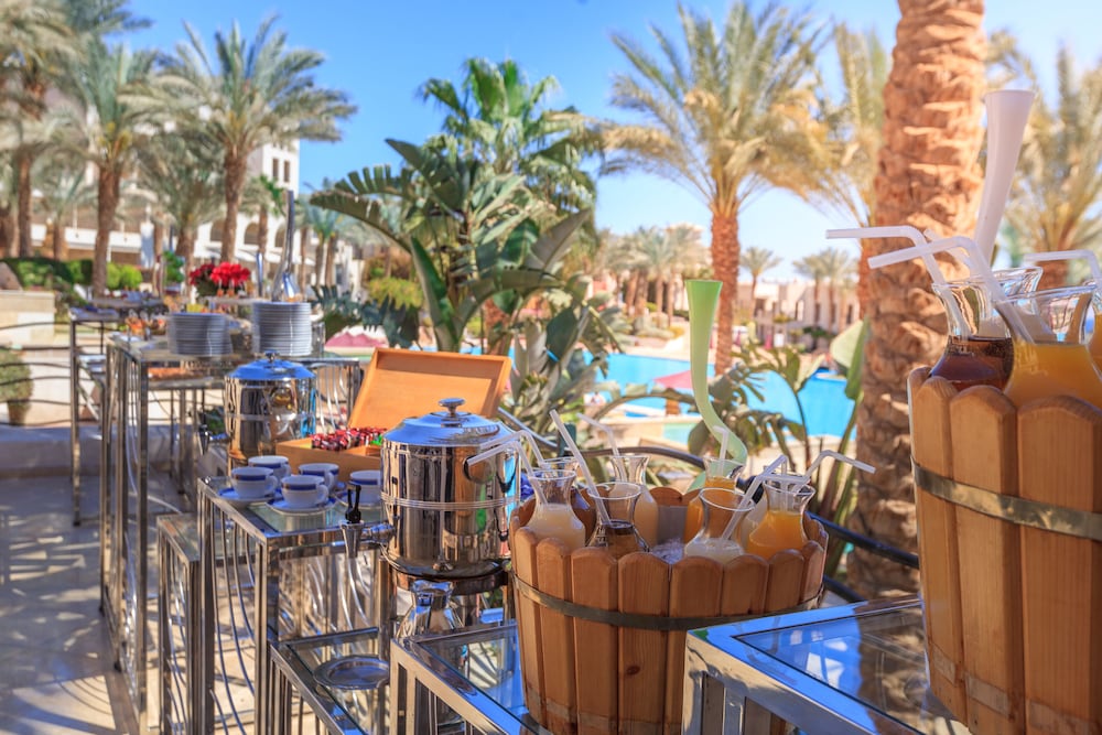 Попробуйте международная кухня в ресторане Ramses — одном из 4 ресторанов, которыми располагает этот отель. Тем, кому не хочется покидать свой номер, предлагается круглосуточное обслуживание номеров. Если вам захотелось выпить освежающий напиток, загляните в бар у бассейна, 6 баров/лаунжей или 2 пляжных баров. Завтрак (шведский стол) предлагается ежедневно с 7:00 до 10:30 за дополнительную плату.