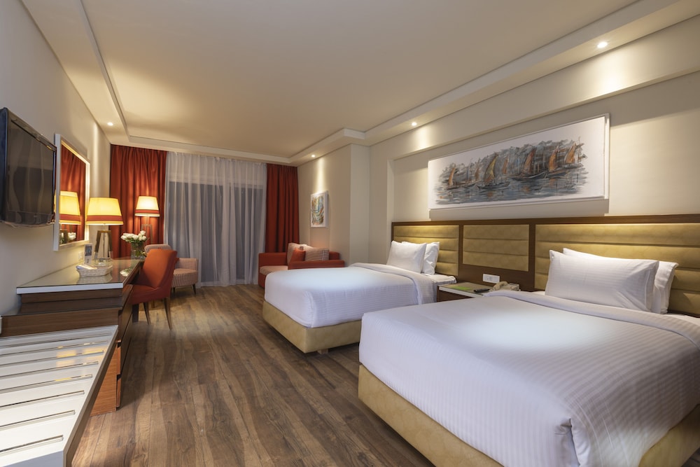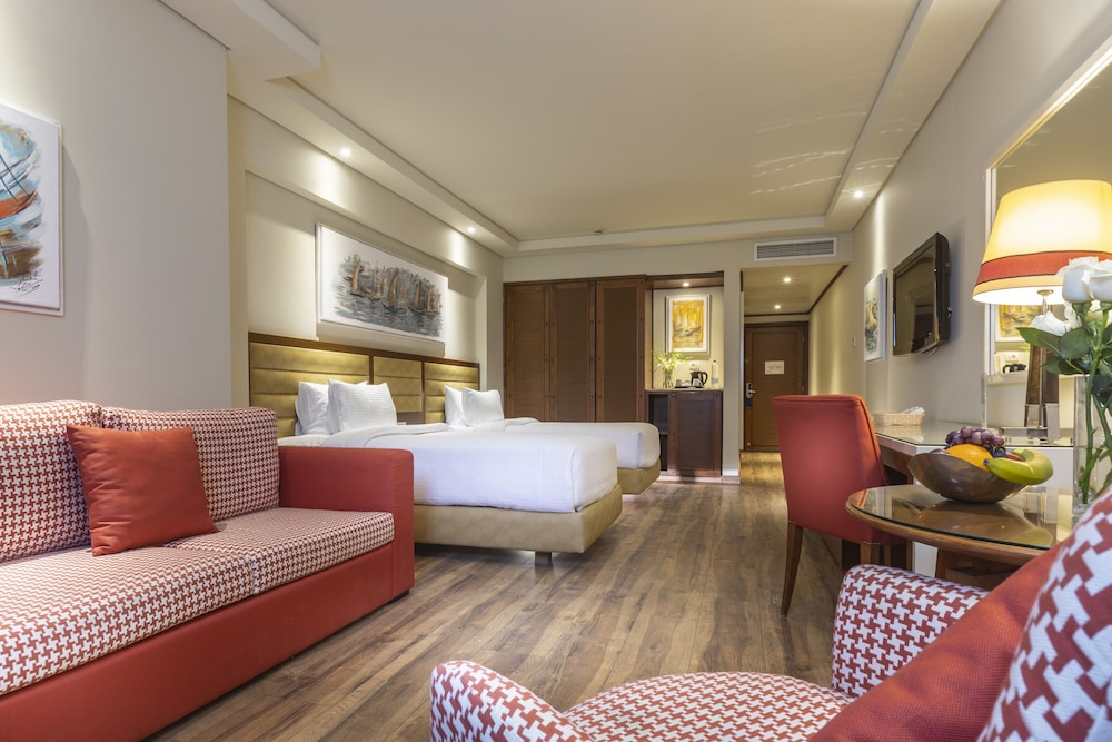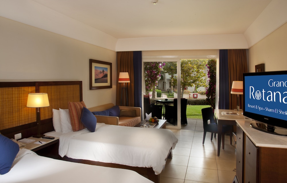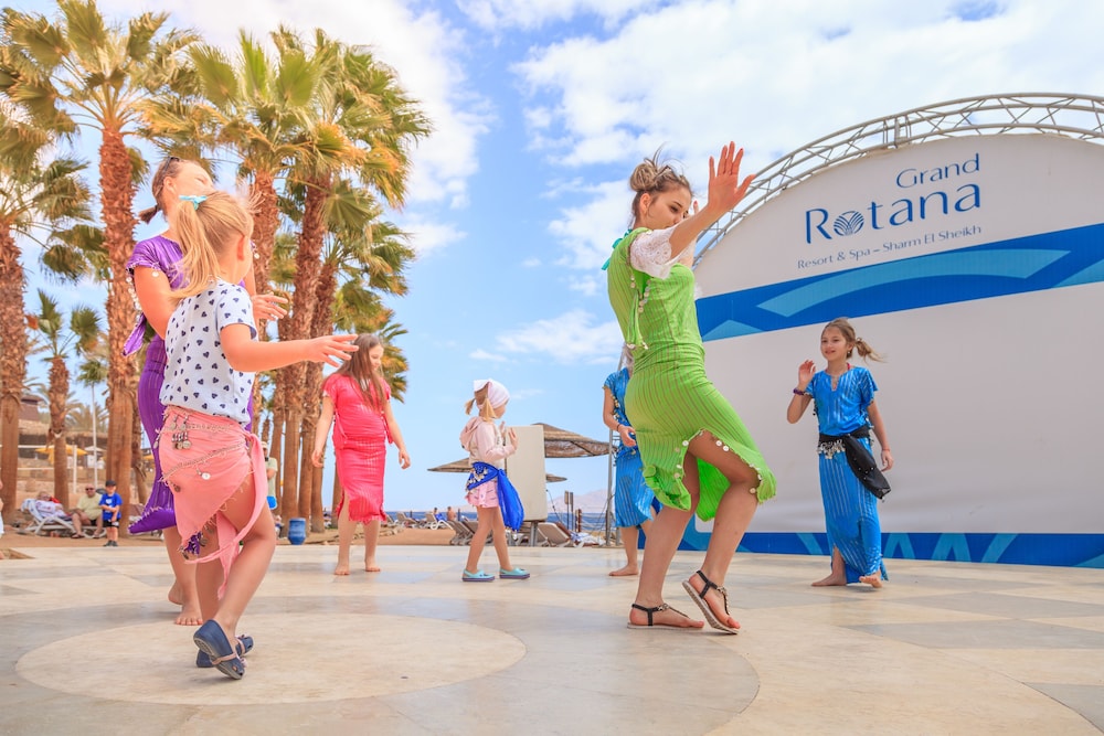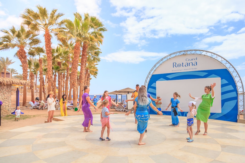 Grand Rotana Resort & Spa расположен в городе Шарм-эш-Шейх, на берегу водоема. Shark's Bay находится в 5 минутах ходьбы, а Гольф-курорт, Шарм-эль-Шейх — в 5 мин. езды на автомобиле. Этот 5-звездочный отель — вариант с прекрасным расположением: Naama Bay находится в 9,5 км, Площадь Сохо — в 4,6 км от него.