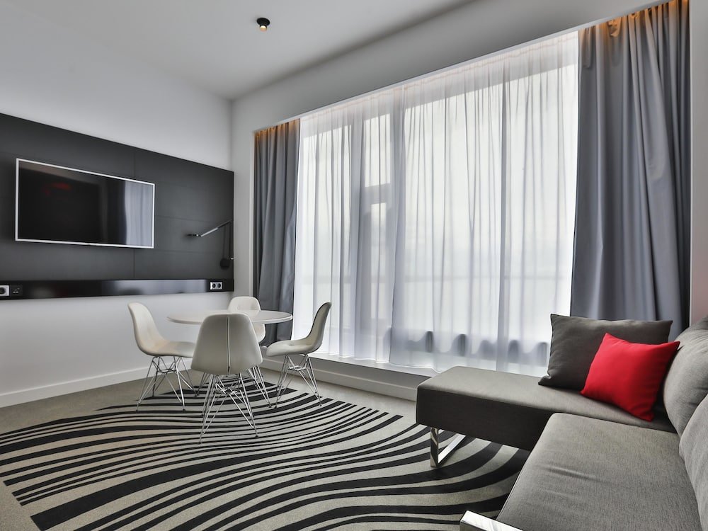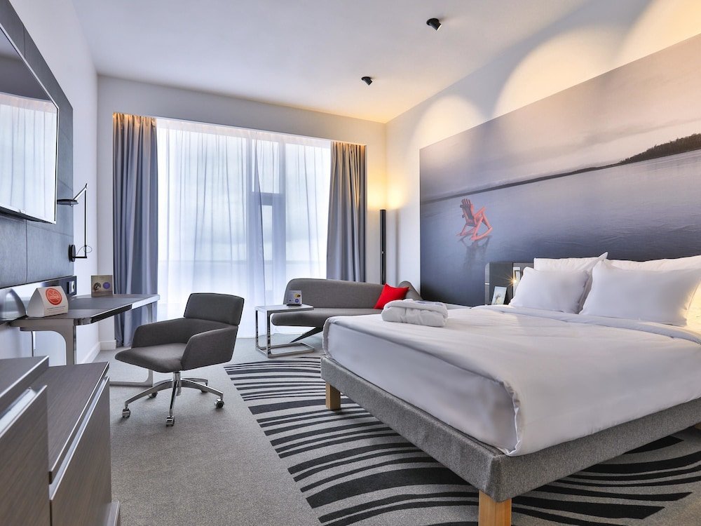 Современные номера порадуют всех, кто привык к комфорту и стильным интерьерам, ожидает внимательный сервис и индивидуальный подход. В отеле Новотель можно заселиться с животными. Для любителей активного отдыха есть фитнес-центр, входящий в стоимость проживания. Гости могут оставить автомобиль на отельной парковке. В отеле удобно передвигаться маломобильным гостям в инвалидных креслах.