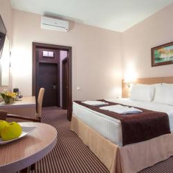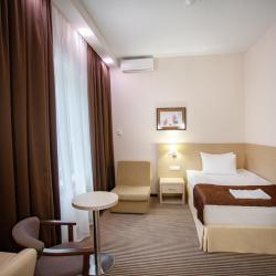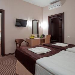 BISHOTEL - новая современная гостиница, номерной фонд которой составляет 76 номеров различных категорий: LUXE, Одноместный номер Single, Одноместный номер Single +. Двухместный номер Double, Двухместный номер Twin, Номер для людей с ограниченными возможностями. Интерьер отеля выдержан в классической гамме оттенков шоколада и нежных сливочных тонов. BISHOTEL создает все условия для эффективной работы деловых людей и комфортного отдыха гостей. Для проведения конференций, переговоров, корпоративных встреч и других мероприятий в отеле предусмотрены 2 современных конференц-зала общей вместимостью до 200 человек. В номерах гостей ожидает все необходимое для полноценного отдыха: удобные кровати с ортопедическими матрацами и высококачественным натуральным постельным бельем, ванная комната, оснащенная техническим оборудованием от ведущих производителей, система климат-контроля, телевизор с плоским жидкокристаллическим экраном, цифровое TV с возможностью вещания около 150 каналов, бесплатный высокоскоростной проводной интернет и Wi-Fi, телефон, сейф, мини-бар, рабочий стол. Современные звуко- и светоизоляционные системы гарантируют комфорт, тишину и спокойный отдых в любое время суток. Для безопасности гостей установлено круглосуточное видеонаблюдение, система контроля и управления доступом, противопожарные двери с электронными замками, современная система противопожарной безопасности. На первом этаже гостиницы расположено уютное и стильное "BISCAFE", которое предлагает блюда международной кухни. Также к услугам гостей предоставлены бесплатная парковка, сувенирный киоск, услуги прачечной. Гостиница BISHOTEL удобно расположена относительно важных транспортных развязок, а также культурных и деловых центров города Липецка. Отель находится в ближайшей доступности от трассы Тамбов-Орел, дорога Липецк-Чаплыгин М6, в 15-минутах езды от ж/д вокзала и 30-40 мин от аэропорта. В 10 мин от гостиницы находится Соборная площадь, здание Администрации Липецкой области, Христорождественский собор, Поклонный крест Кириллу и Мефодию, возведенный в 1994 году, Верхний парк, Нижний парк, Быханов сад, площадь Петра Великого с светомузыкальным фонтаном, санаторий "Липецккурорт" с минеральными водами. В шаговой доступности располагается ТРЦ "Липецк" с развитой инфраструктурой. Остановка городского транспорта находится в 40 метрах от гостиницы, что дает возможность гостям без проблем добраться до основных деловых точек города на общественном транспорте или личном авто.